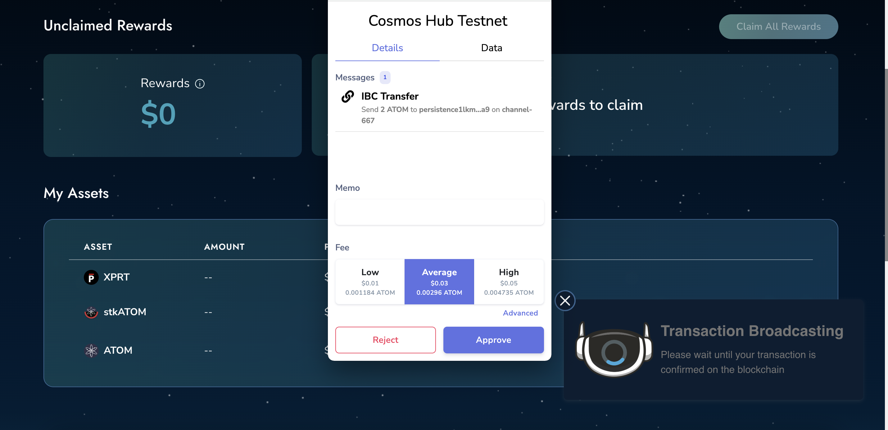 • Step 3 - Approve the IBC transaction to transfer the assets from other chains.