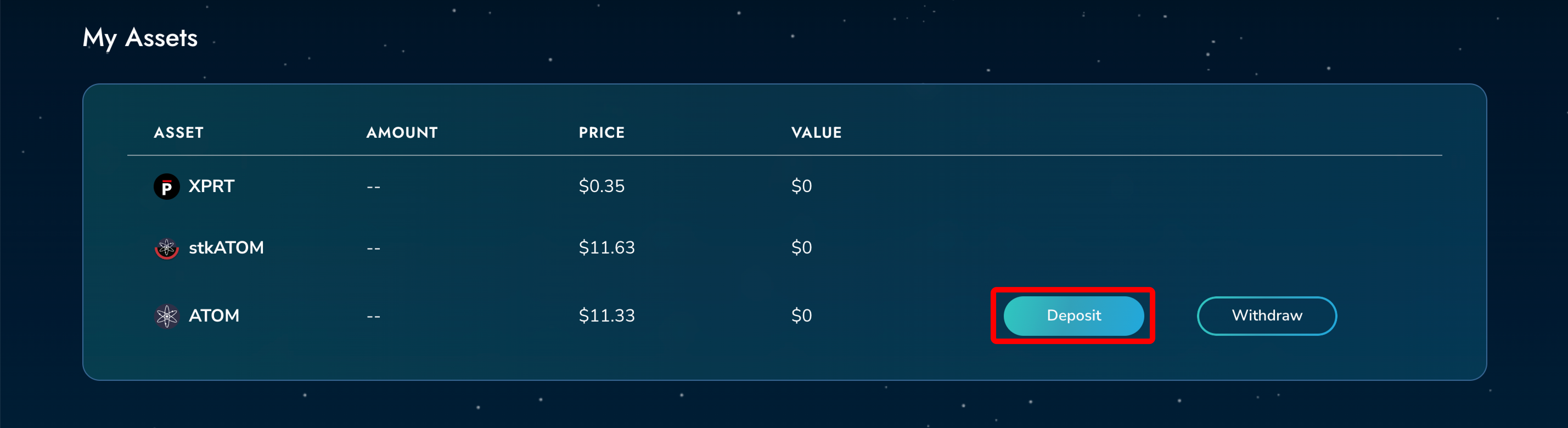 • Step 2 - Enter the preferred amount to deposit and click "Deposit" button on the popup.